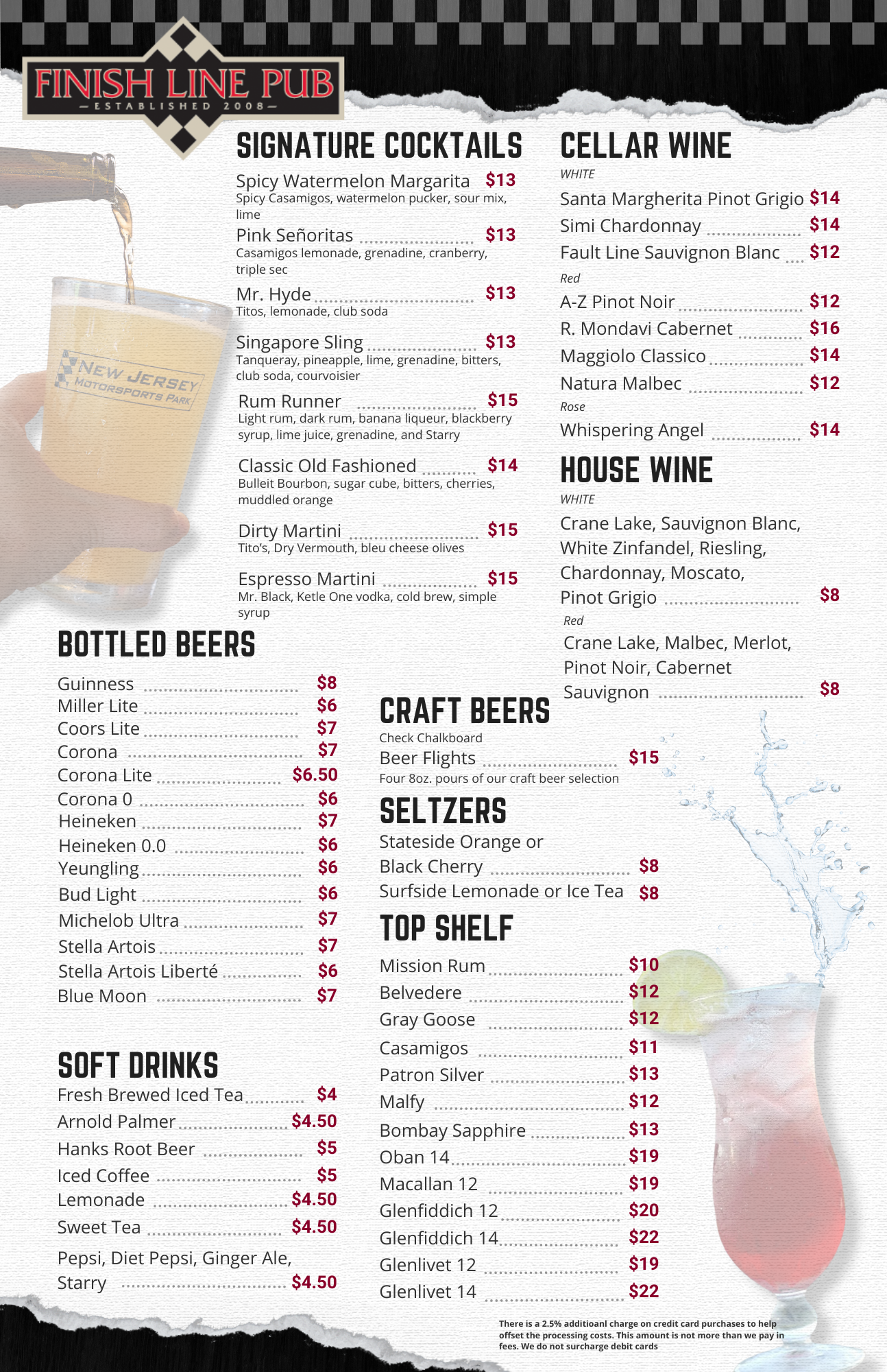 Located in the heart of New Jersey Motorsports Park, The Finish Line Pub offers a family-friendly pub atmosphere. A popular hot-spot for locals and racers alike! The Finish Line Pub offers a wide-ranging menu from over-sized pub sandwiches to mouth-watering steaks and fresh seafood. The Pub is open seasonally March – November to align with the race season at NJMP.