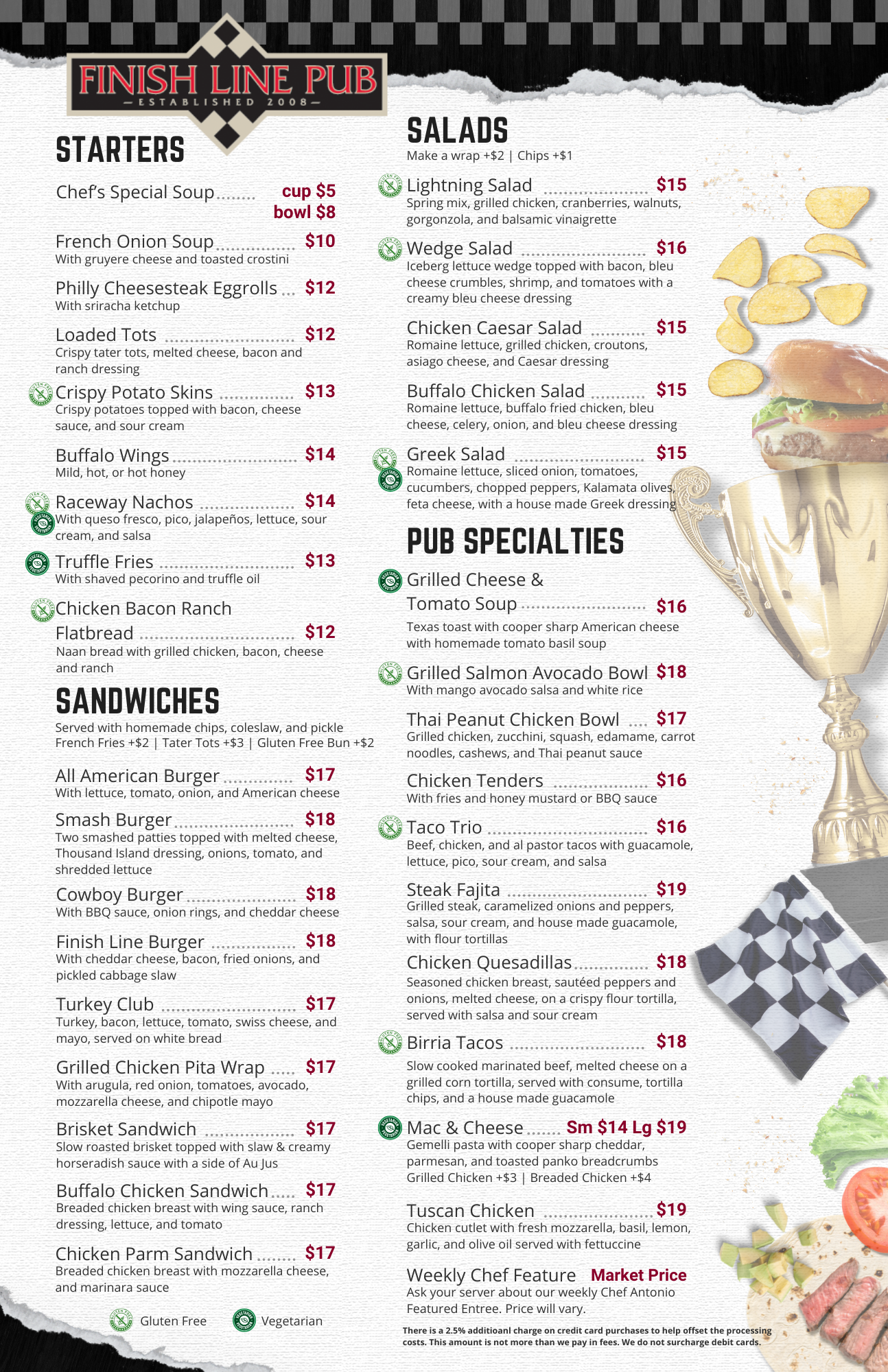 The Finish Line Pub is the perfect space to host your bridal shower, anniversary dinner, awards banquet and more!